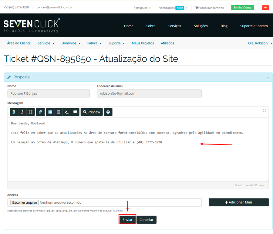 - Depois, clique em "Enviar" para enviar sua mensagem ao suporte.